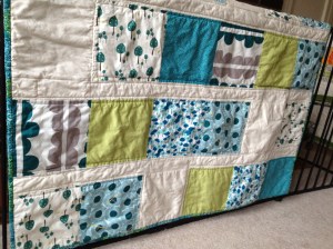 Since my last post, I’ve been busy making a few commissions from my lovely grandmother, who turned 85 in March. She usually knits baby blankets, but her arthritis has been a problem and when she saw that I was quilting, she asked if I would make a few(!) for some upcoming baby showers.