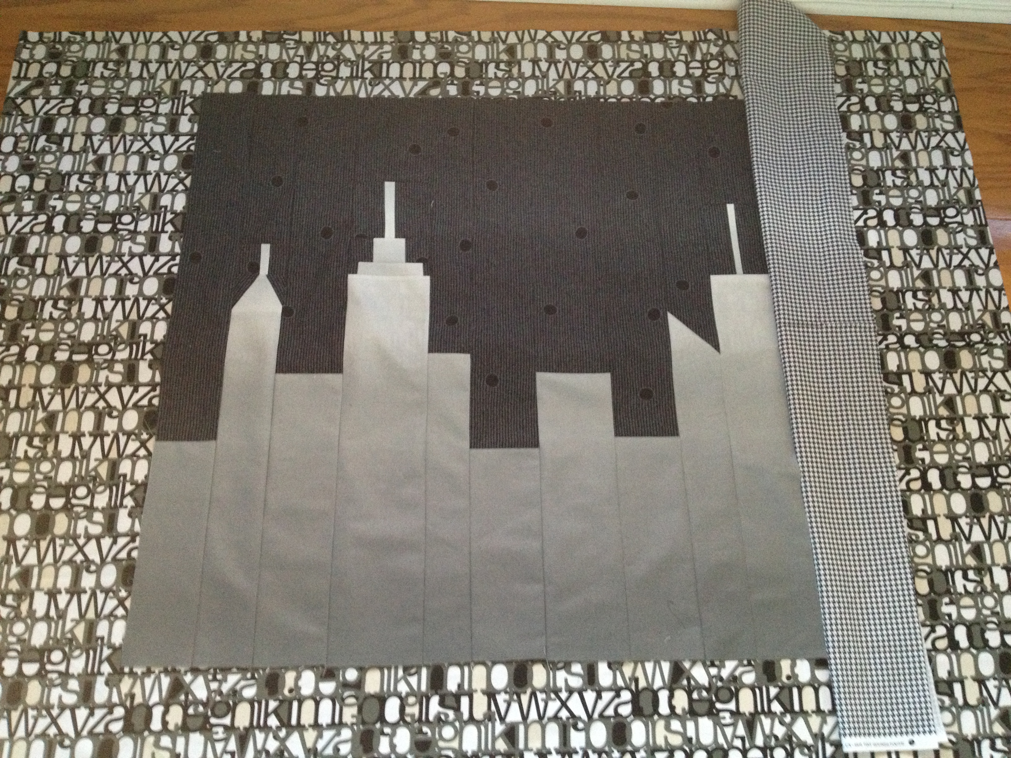 I’ve also been working on a commission and a skyline quilt for a new baby due mid month. Here’s a sneak peek: