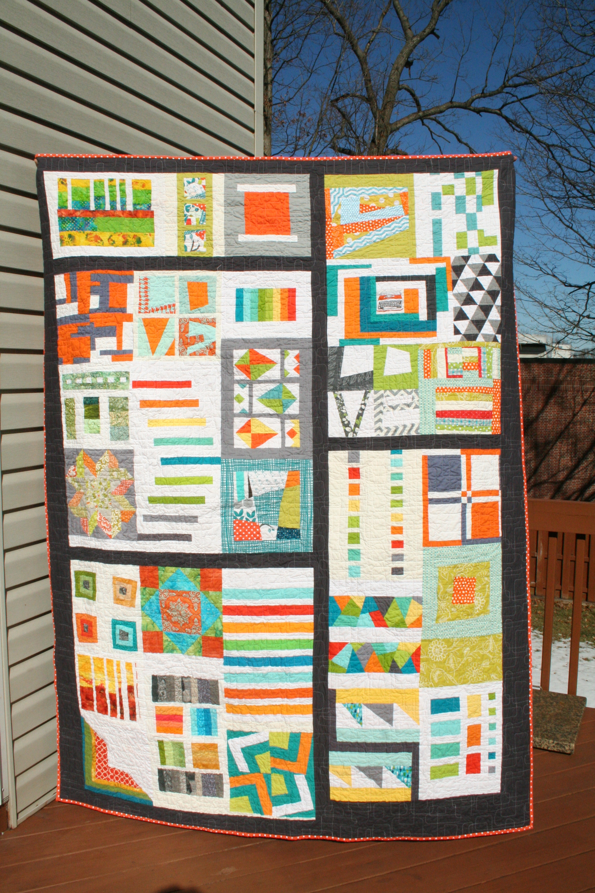 I had the honor of working on the North Jersey Quilt Guild’s charity quilt for the Austin Children’s Shelter. The Modern Quilt Guild held a call for blocks in the Quiltcon colors, and they received so many that they divided them up and sent seven to each chapter to make into a charity quilt.