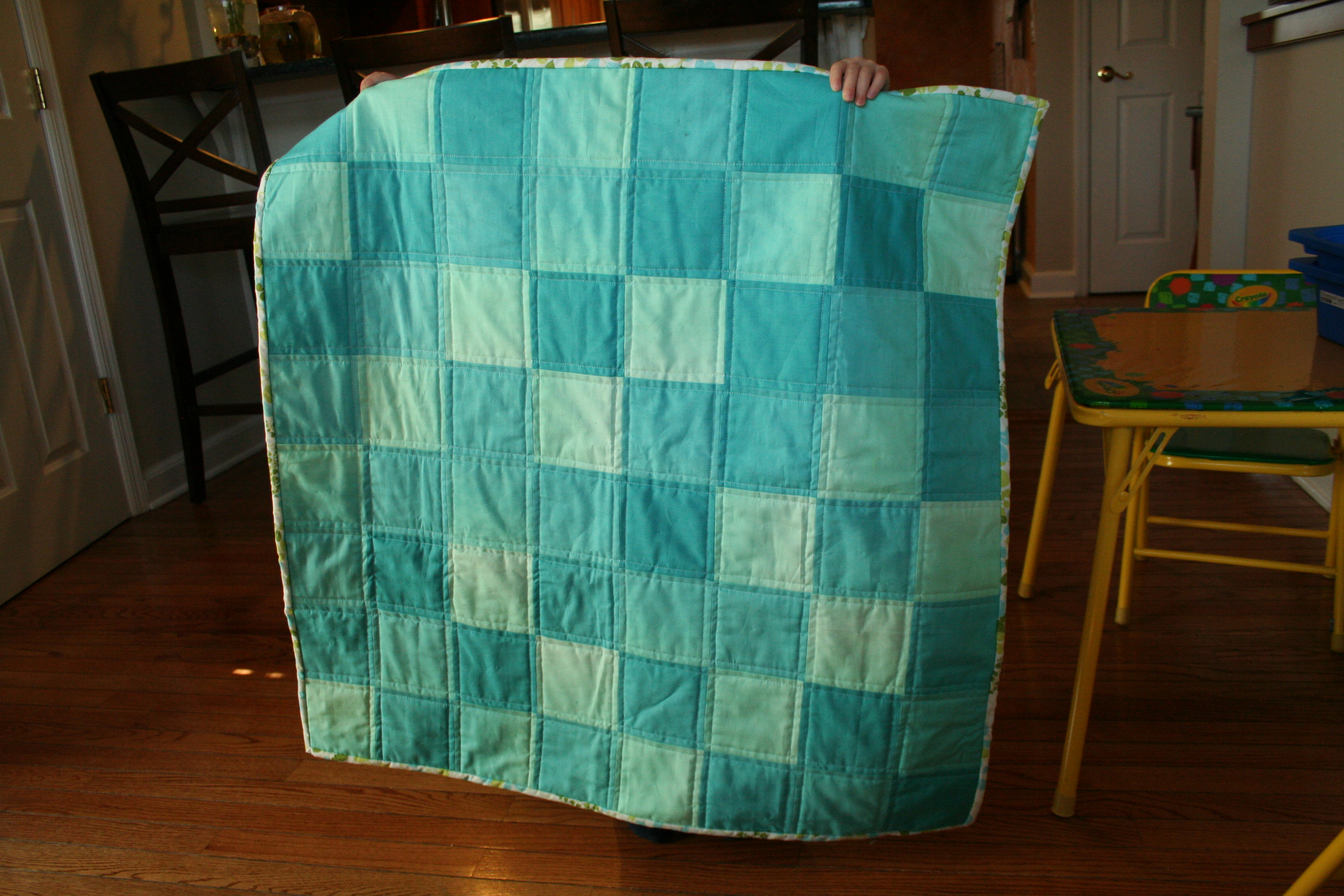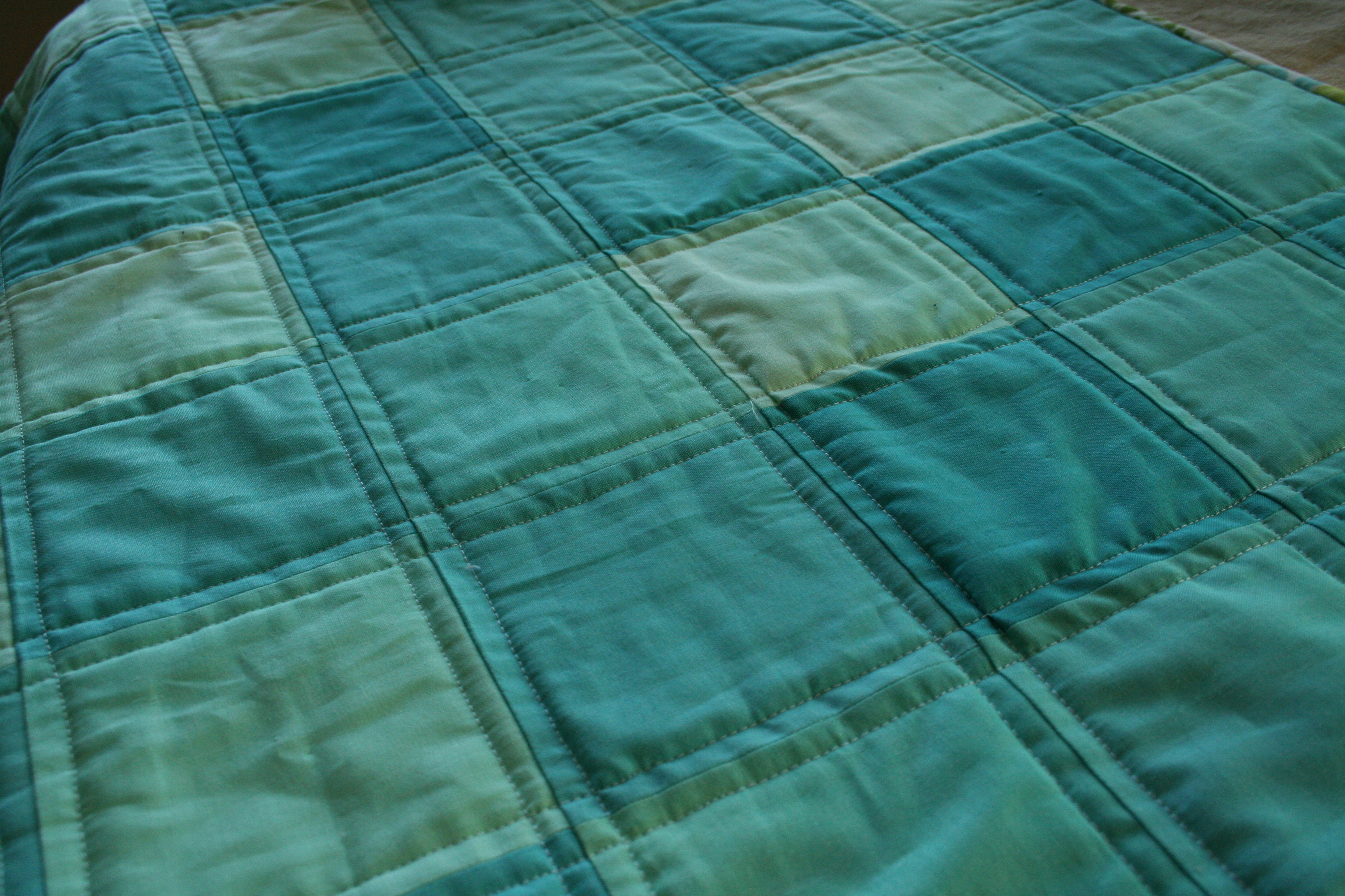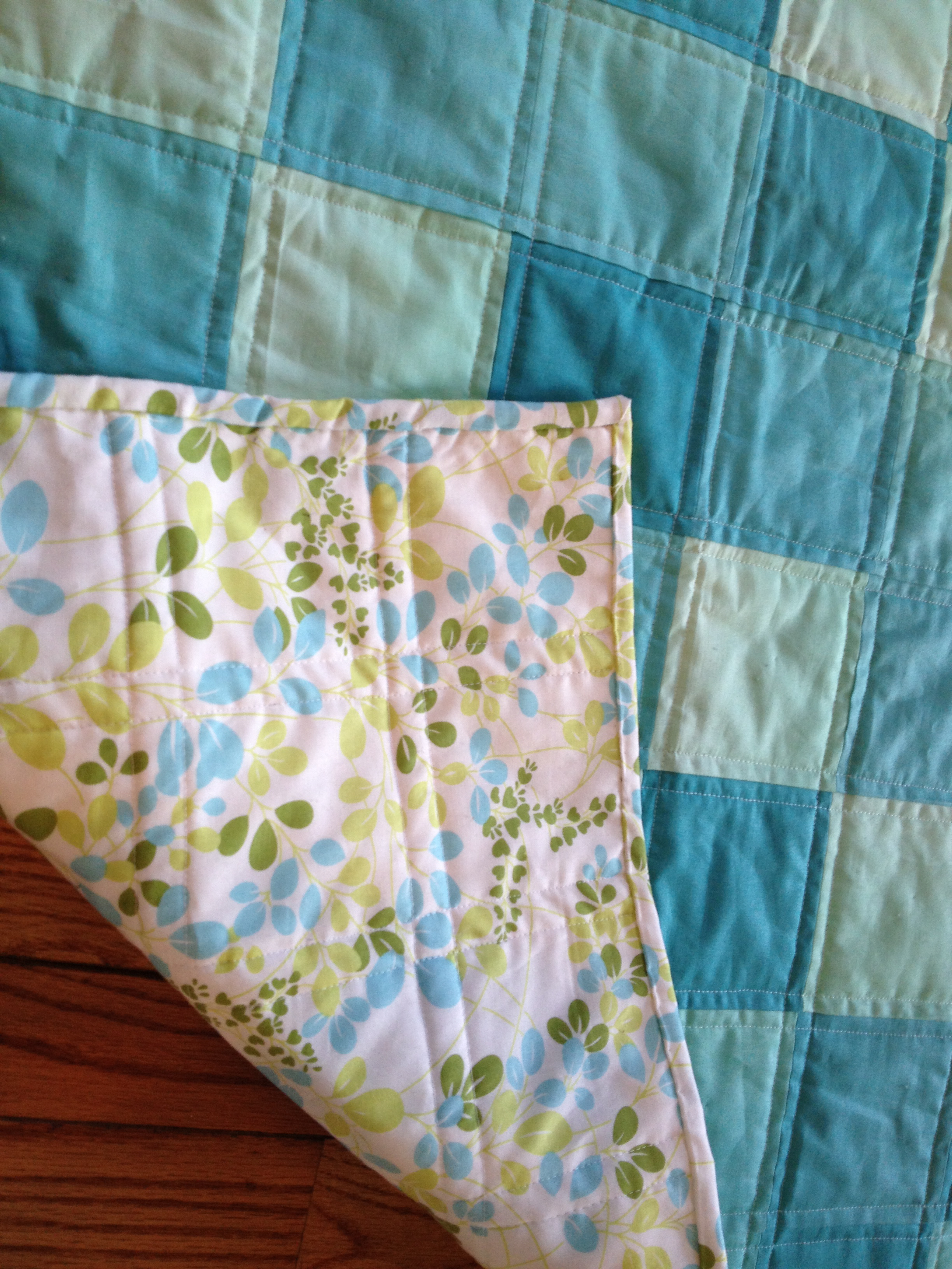 This quilt was made differently for a very exciting reason. It’s a sample for a Quilting Basics class I’ll be teaching at Rock Paper Scissors on Mondays in April and May. We’ll work on rotary cutting, piecing, straight-line quilting and binding. I took lots of notes while making this one so that I’d remember to share all of my tips. The very second that sign up is available I’ll let you know.