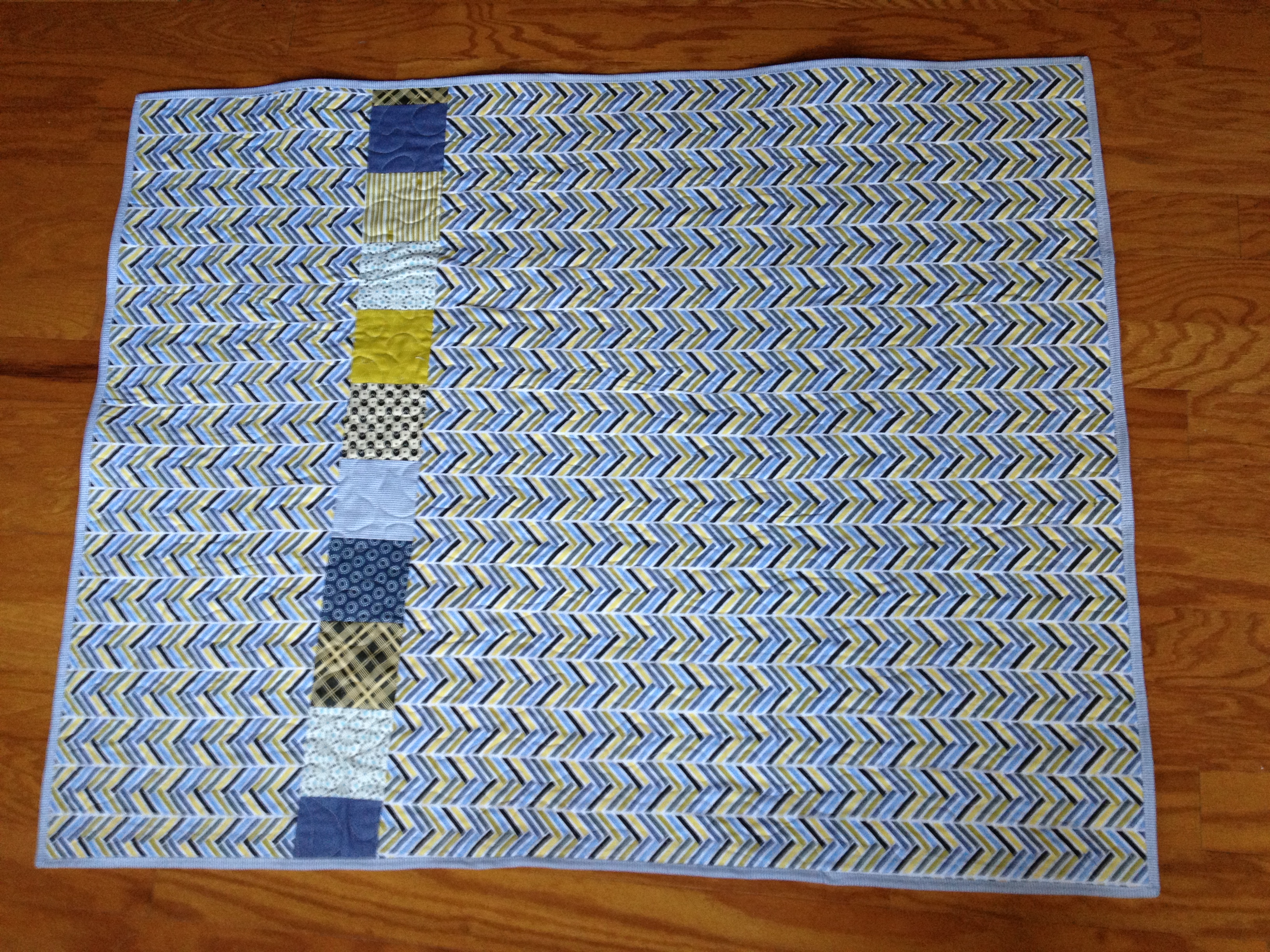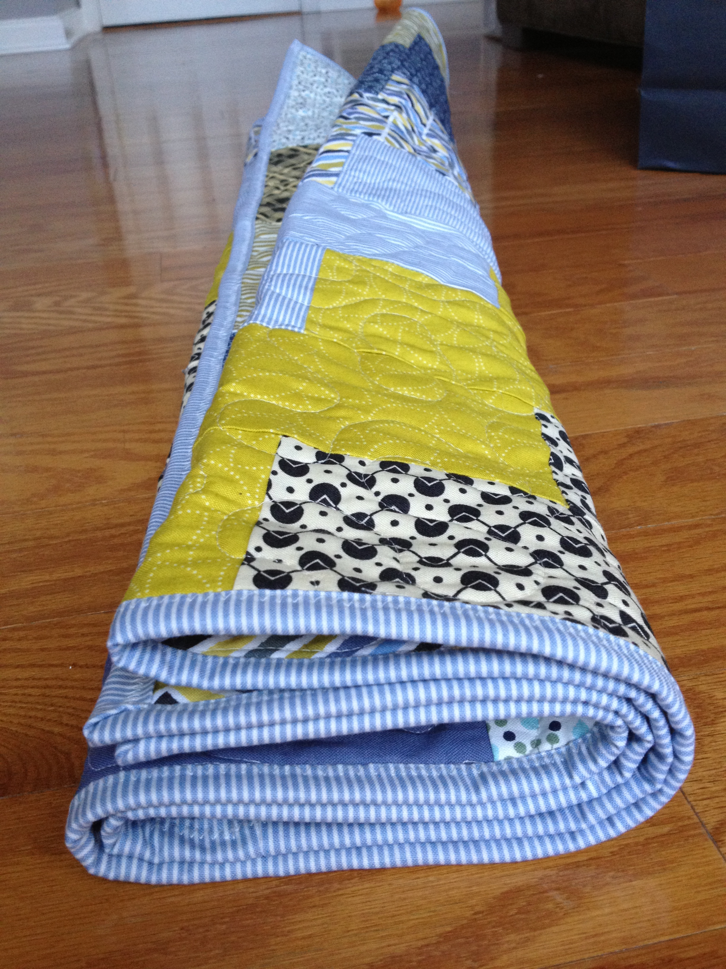 And here’s the binding, made with some light blue pinstripes from my stash.