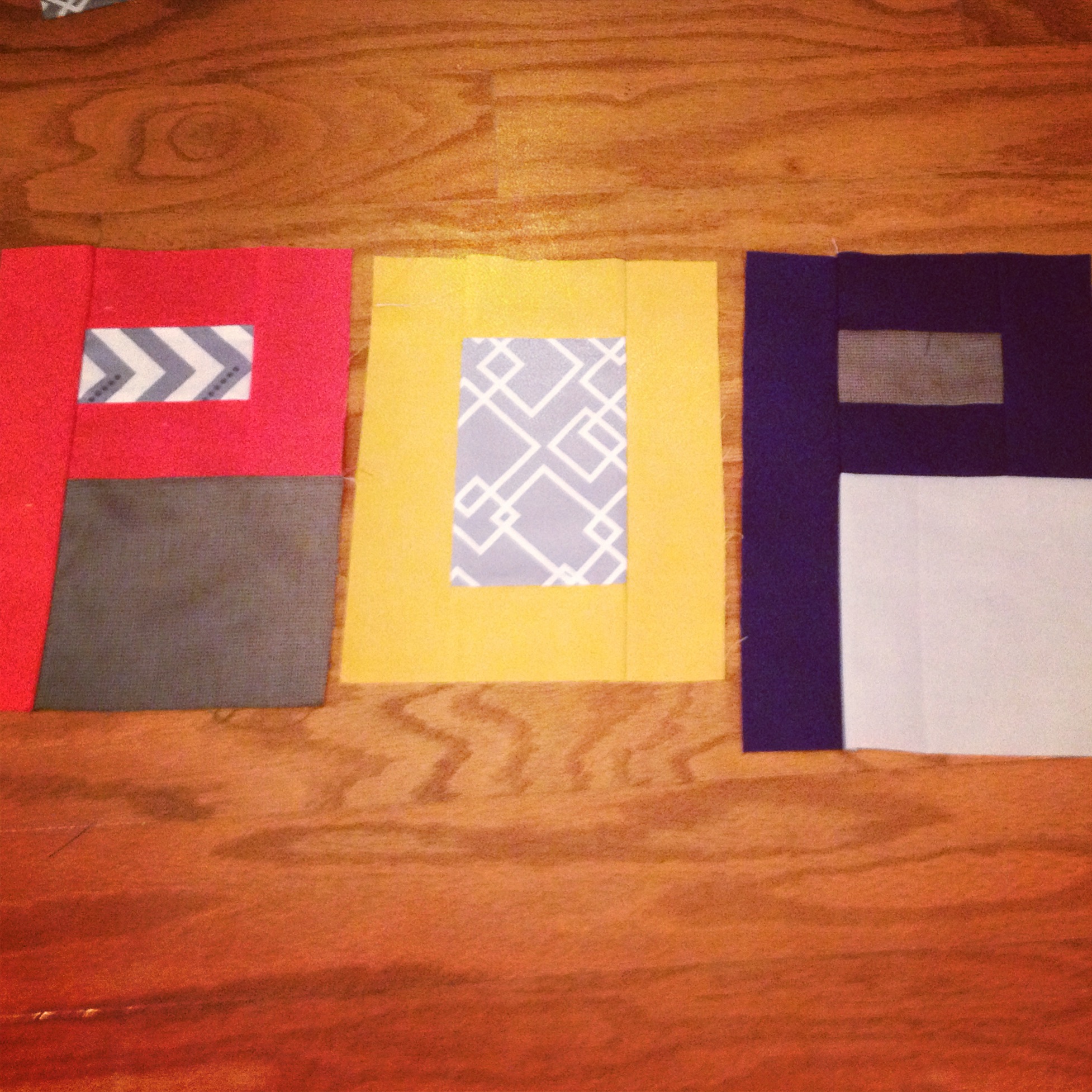 To recap, my original design is about angles, negative space and a little love for the Big Apple. The back is a surprise for the quilt’s recipient, with improv-pieced grey and a pop of color text.