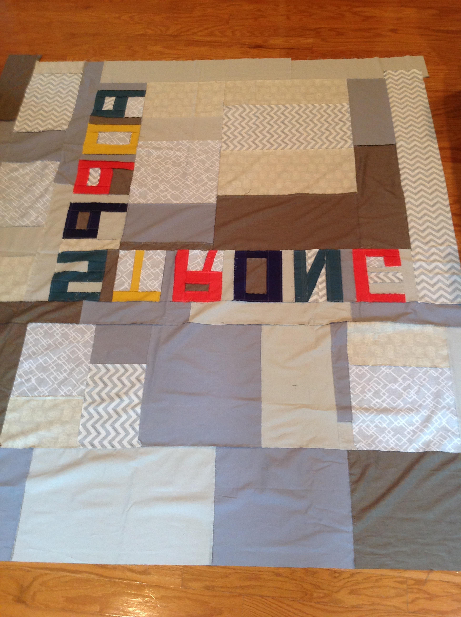 This weekend I finished the back of the latest skyline quilt! It is ginormous. I used all neutral solids and prints to accentuate words in color. I’m not going to do a big reveal just yet, but if you’re crazy like a fox you can figure it out.