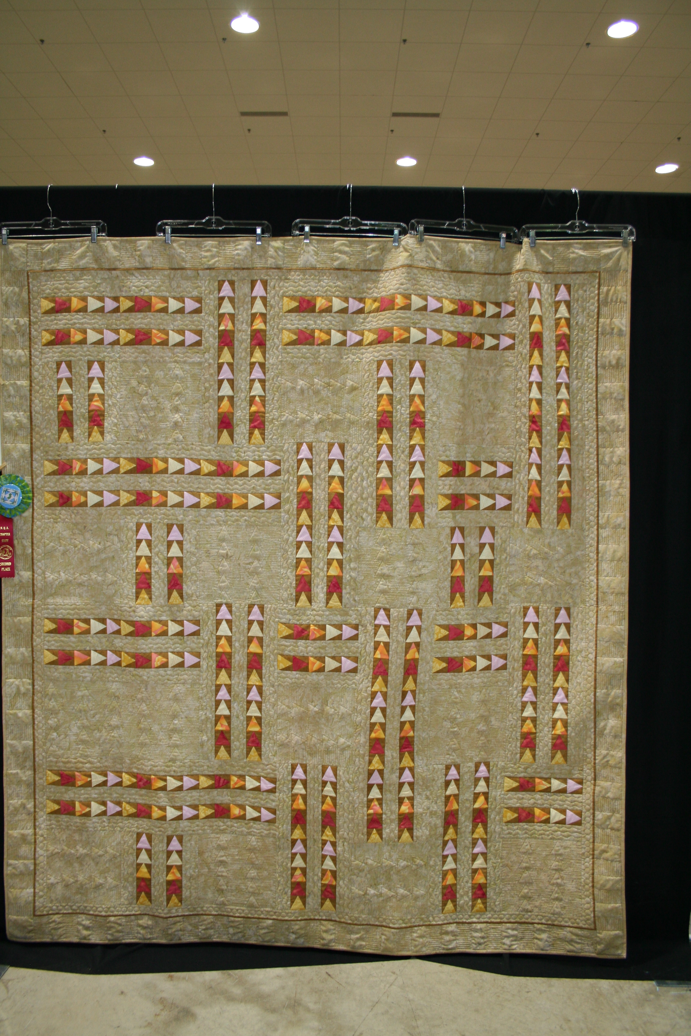 This quilt is called “Something Woven.” The design is by JoAnn Lepore with quilting by Ann Hutcheon.