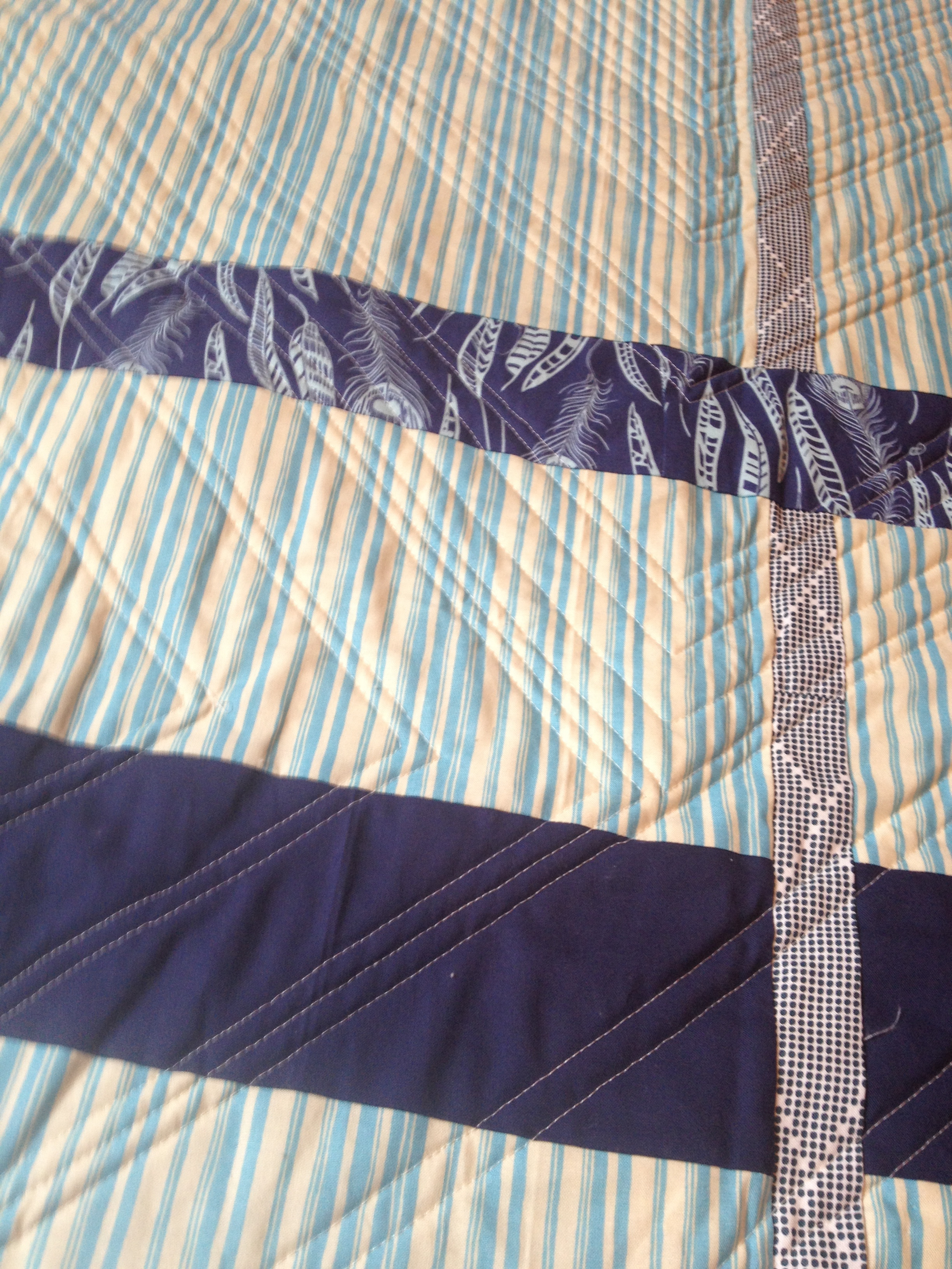 The blue baby quilt just needs a binding, which I’m hoping to get done tonight. I’ve shown some pictures of the quilting, but I just love it, so here’s one more of the back. I’ll do the full reveal when it’s in its home, hopefully early next week.