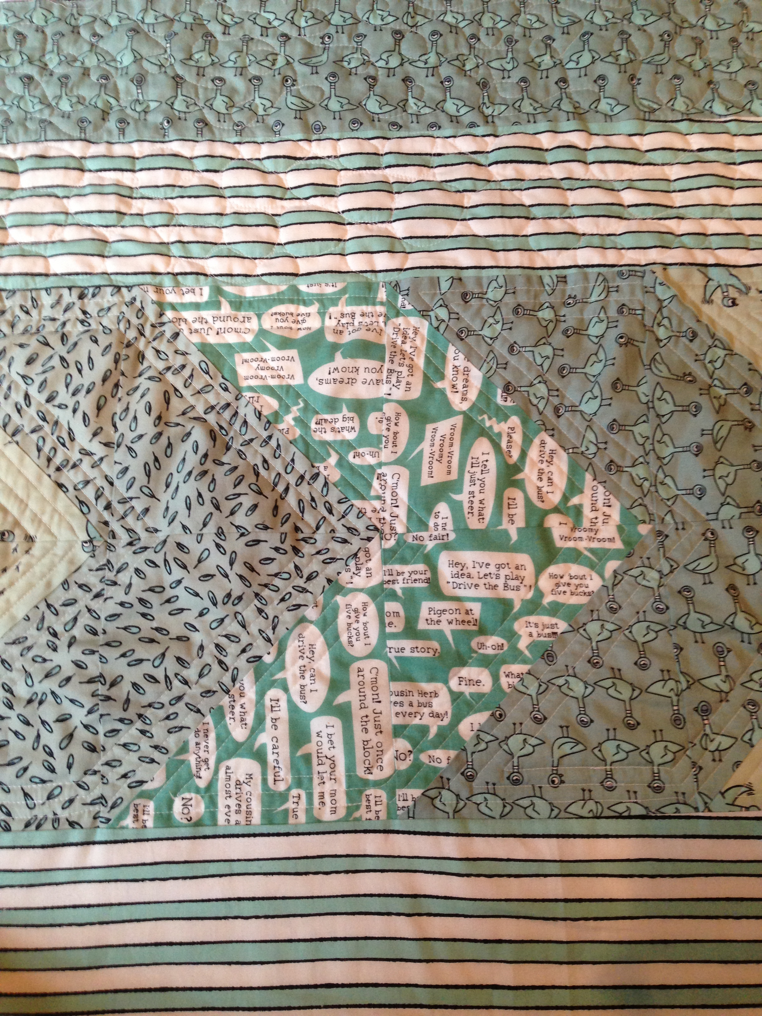 Four Beginning Quilting classes, one Free Motion Quilting class, my first NJMQG meeting as president, a field trip to Cloud9, one pigeon finish and one almost there.