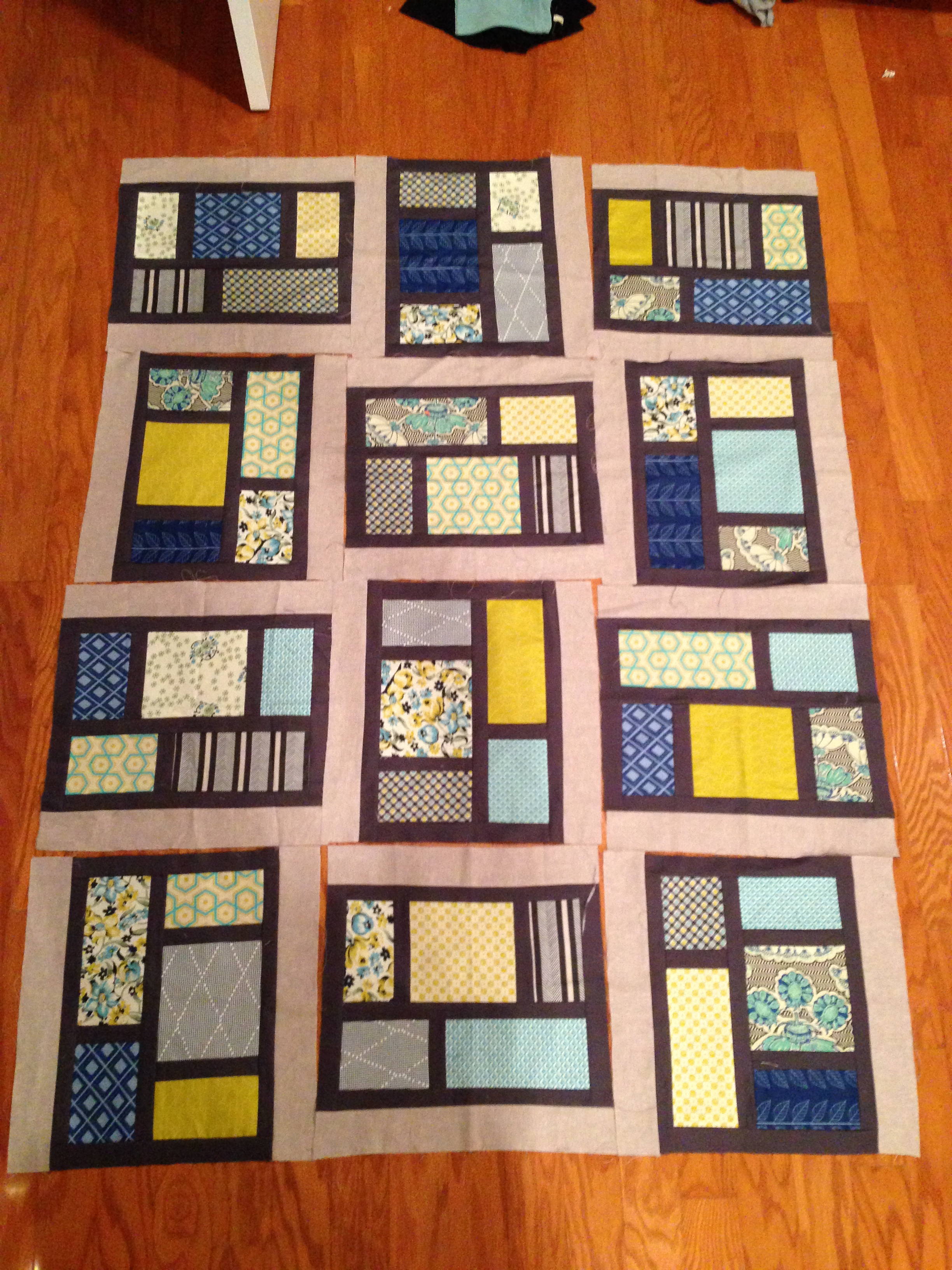 I delivered a quilt that will be revealed very soon (with a free pattern!!), so last night I got to revisit one that will actually stay in our house! It’s Elizabeth Hartman’s Kitchen Window pattern, and was made with the help of a block party group. It’s going to live on the blue couch with Eli’s pillow.