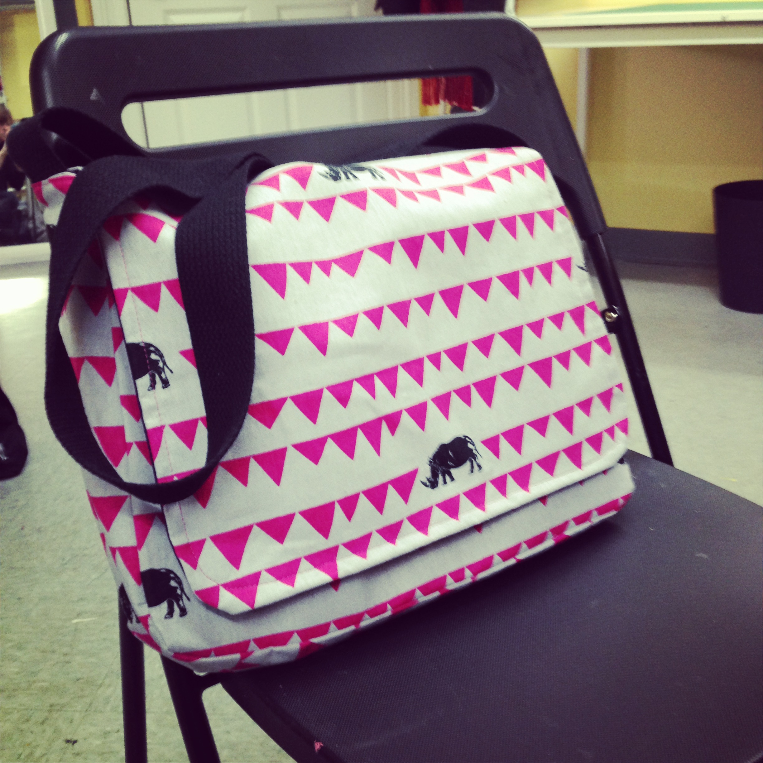 The first is my Echino rhino messenger bag! Besides learning to use a sewing machine, I had never taken a sewing class before. My learning method was to study a pattern and make lots of mistakes. But I wanted to branch out a little from quilts to bags, and Melissa‘s class at Rock Paper Scissors was just the way to experience a class from a student’s perspective and to get over my fear of interfacing and three dimensional objects.