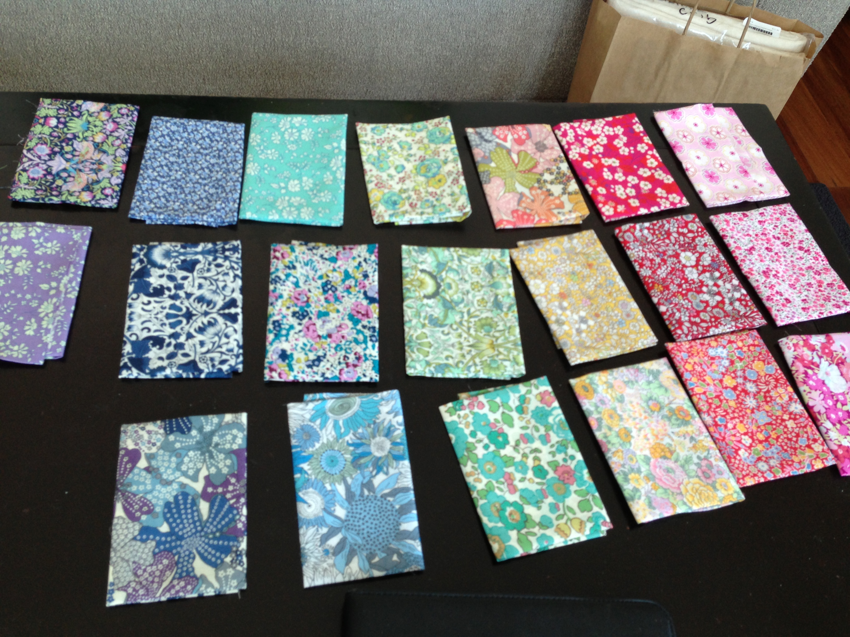 I bought a stack of Liberty scraps this summer as a treat for myself, not knowing what I would do with them. But the rainbow arrangement made me happy and every once in a while I would spread them out and brainstorm how to put them to use.