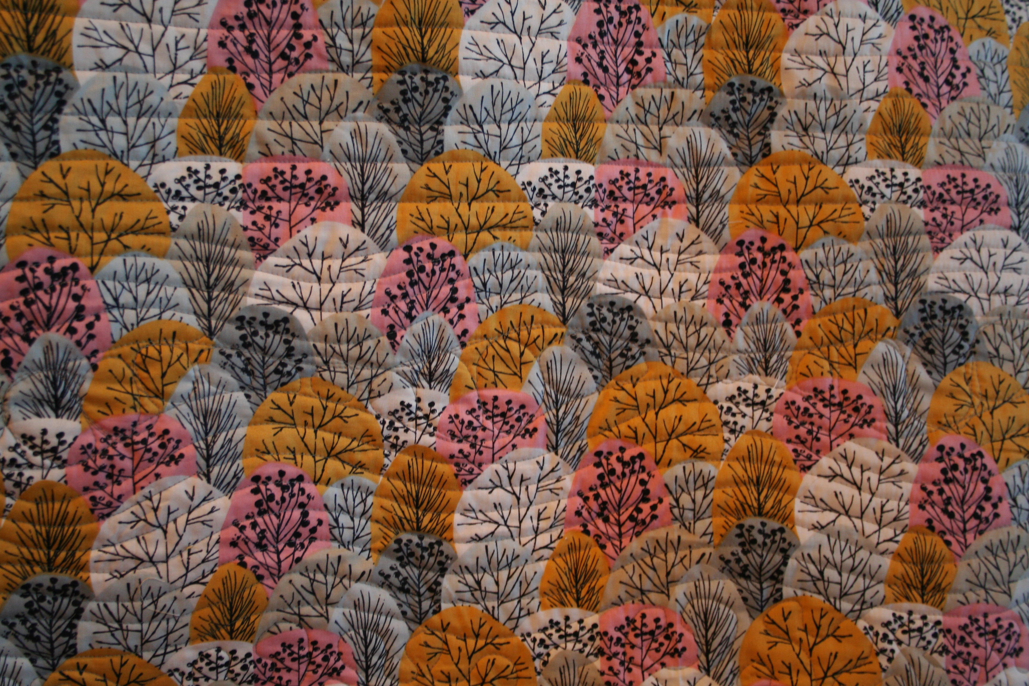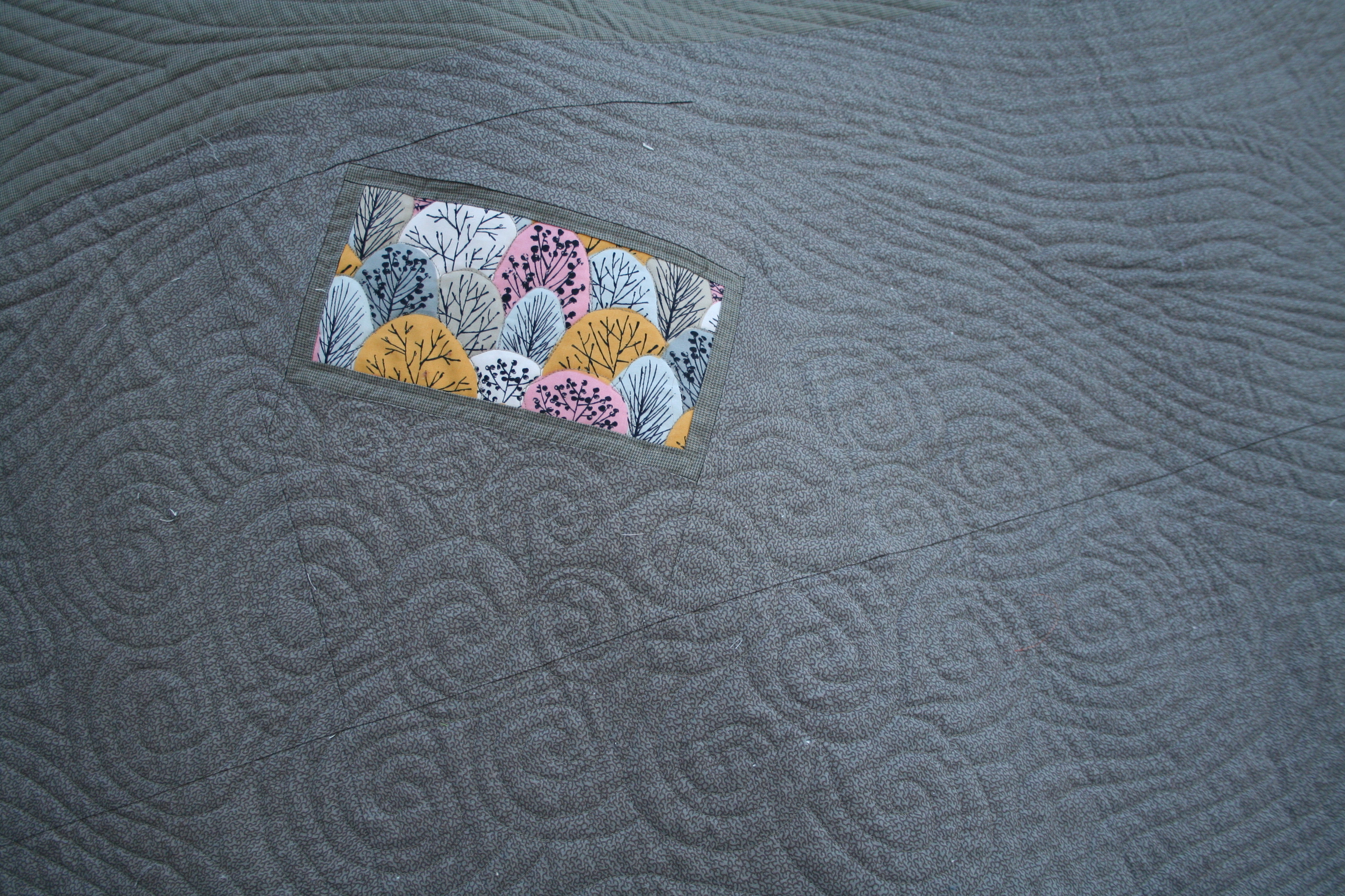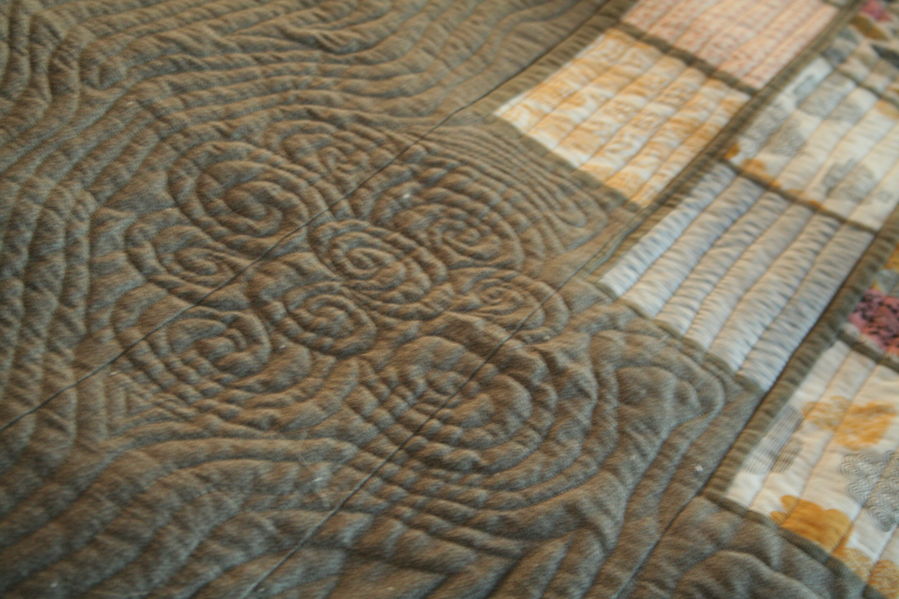 The design of the piecing and the quilting in the negative space were all done kind of by the seat of my pants. I had an idea of where I wanted it to go, but then reality took things in an unexpected and very satisfying direction. I really love this quilt.