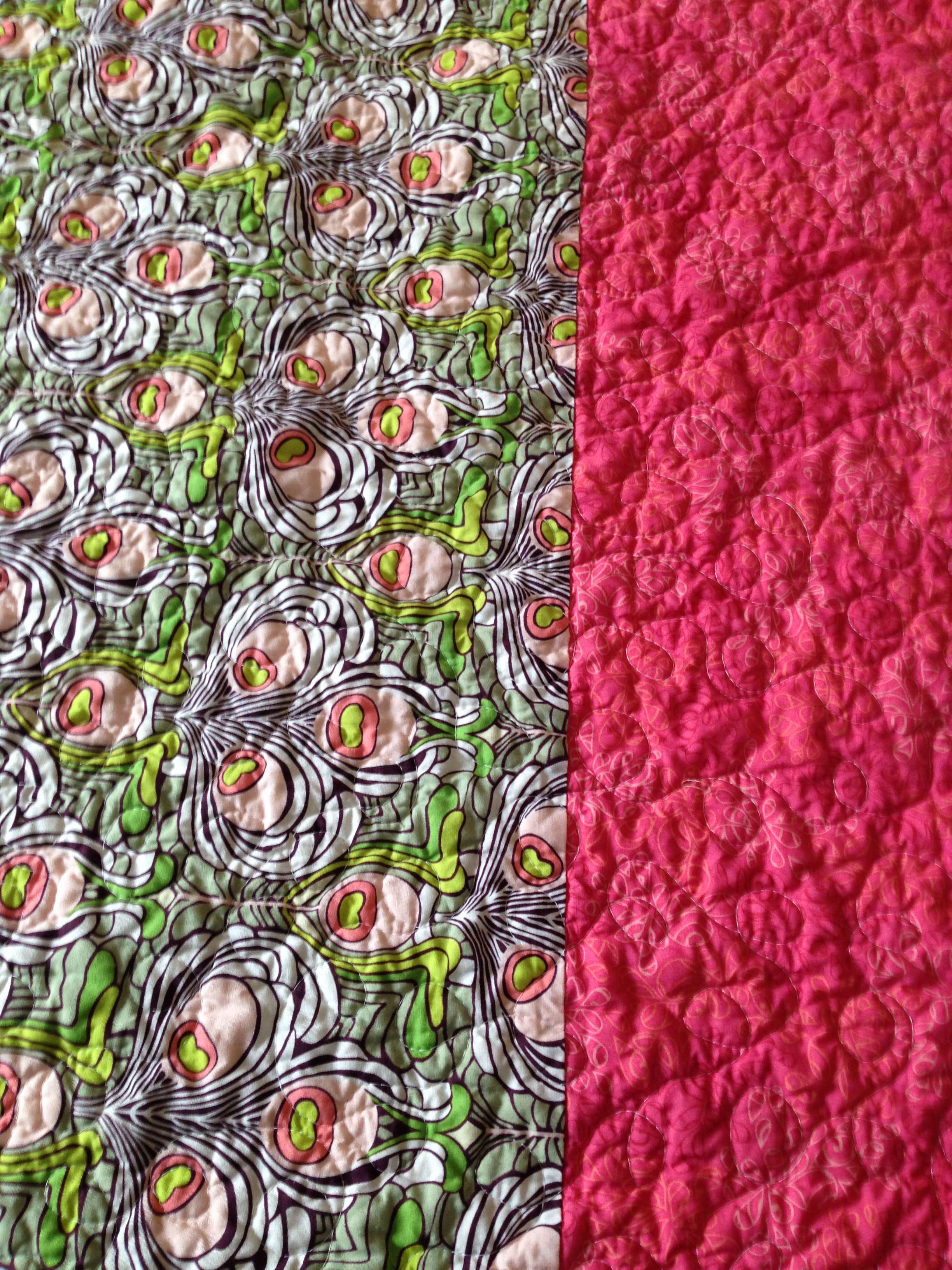 I made it long enough ago that I wasn’t taking note of the fabric yet. I could make out on the selvedges of the backing fabric that it was Art Gallery Filigree.