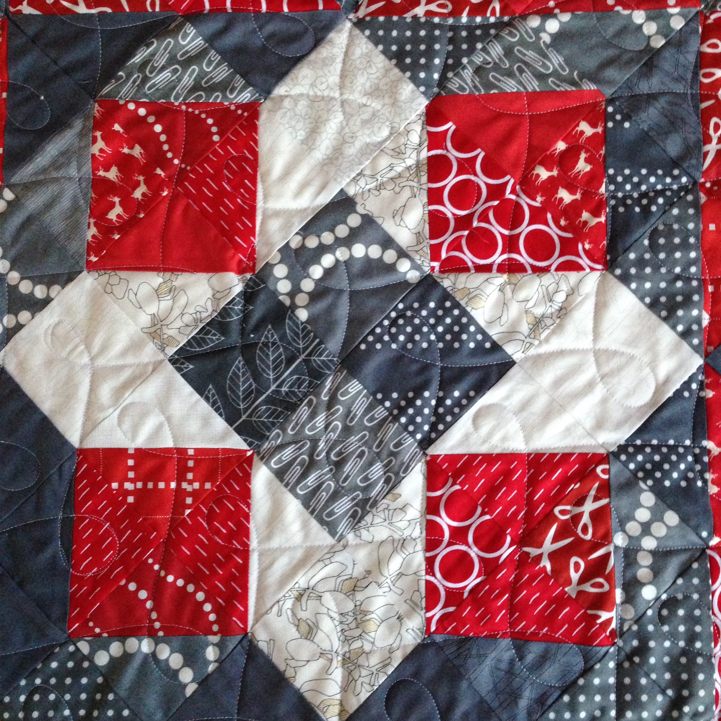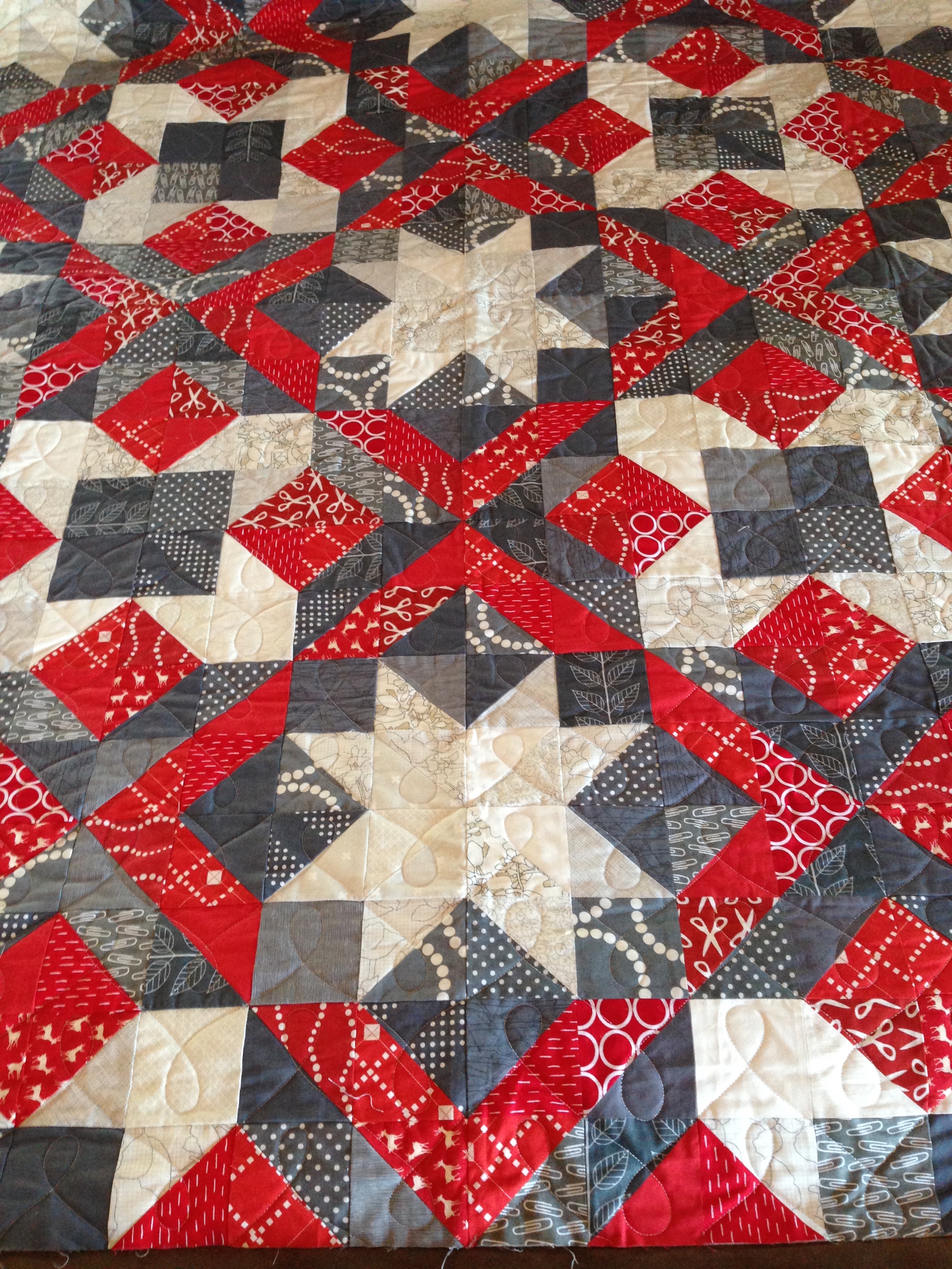 Remember the Christmas quilt top? It’s back from being quilted in Texas! The lovely Stephanie from Late Night Quilter has been building her long arming business and offered to quilt it for me. I jumped at the chance– I’m notoriously slow at making things for myself, and though I love the quilting process, this quilt was the perfect one to send away.