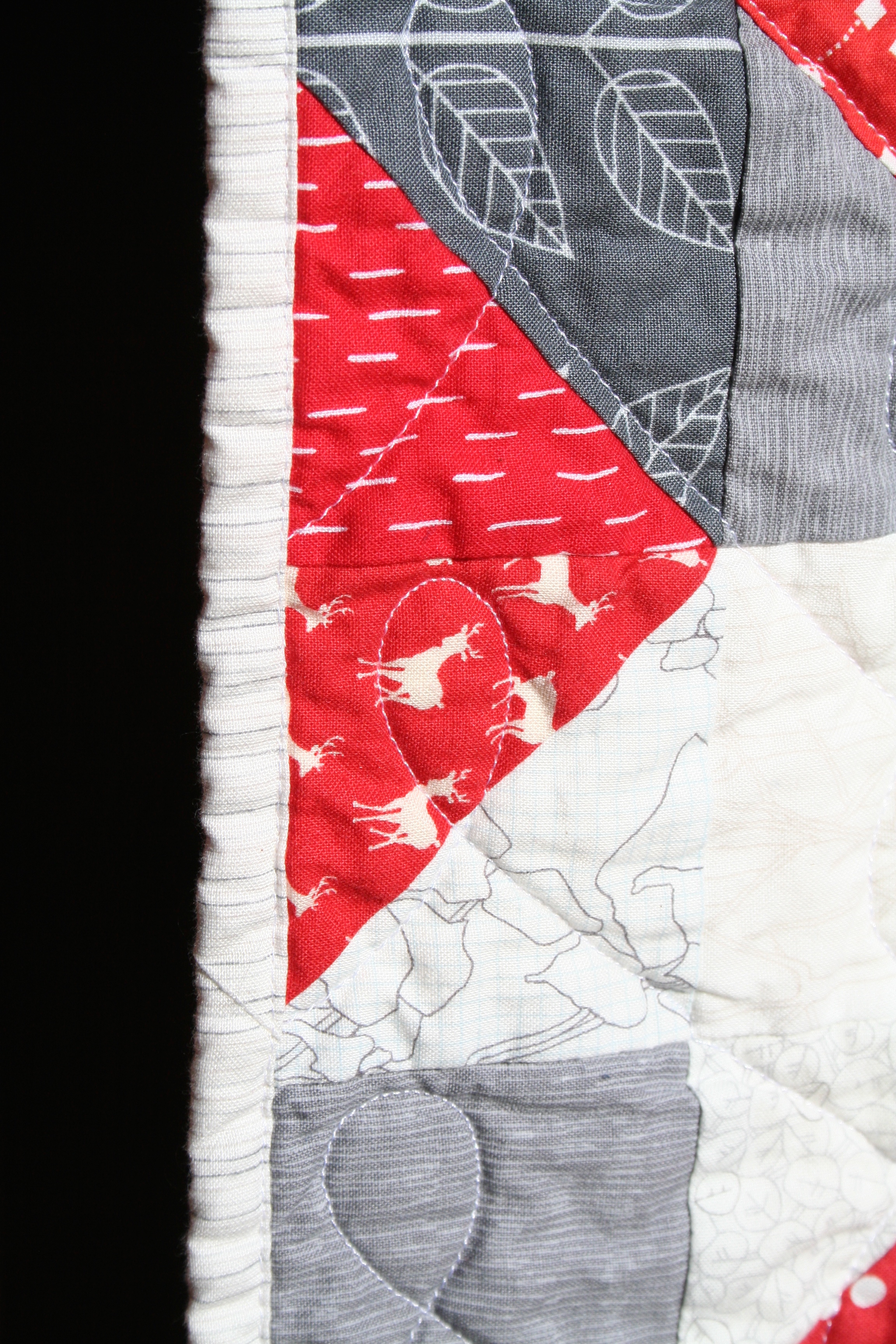 It is quilted in loops by the lovely Stephanie of Late Night Quilter (who, by the way, is still offering 10% off and free batting to readers of this here blog). It crinkled up perfectly.