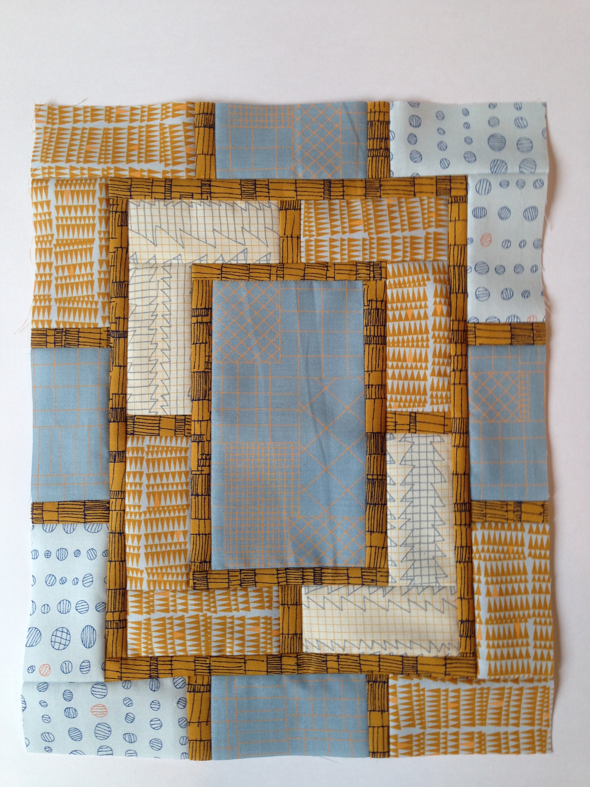 Isn’t it great? I’ve been looking forward to this collection so much. I just love Carolyn’s sensibility. I went right home and made the first Doe Peek block that night:Â