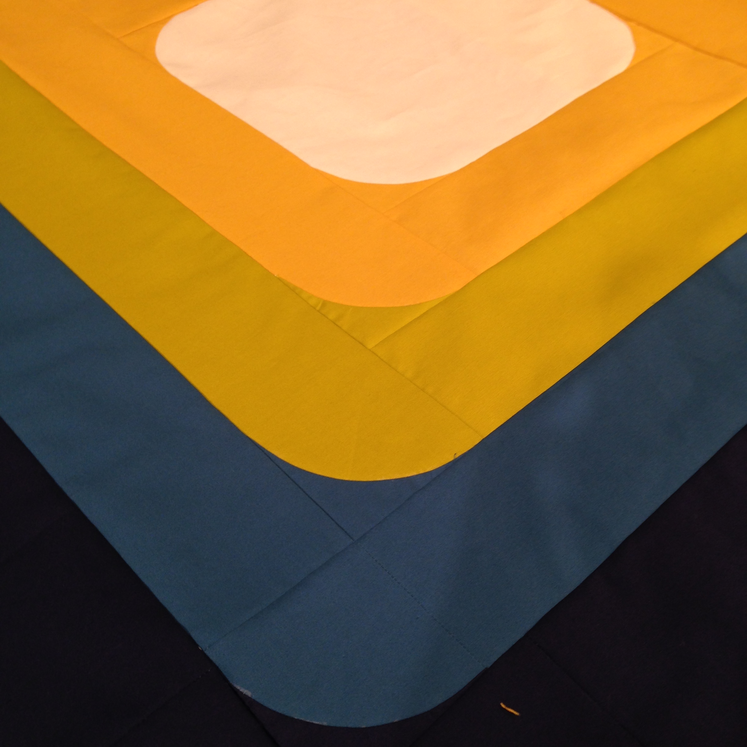 Maybe it was because I had just finished the Green Peek quilt, but I was ready to show it off and I was ready to take on new projects. On Friday, I dug into a stack of solids to try out an idea I’d had for a design that features squares with rounded corners. I finished the top in a day.