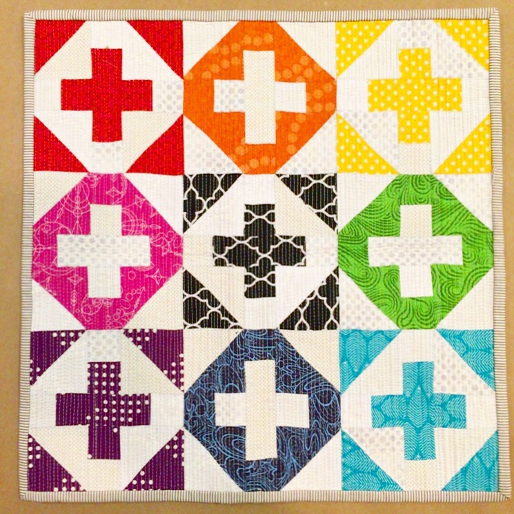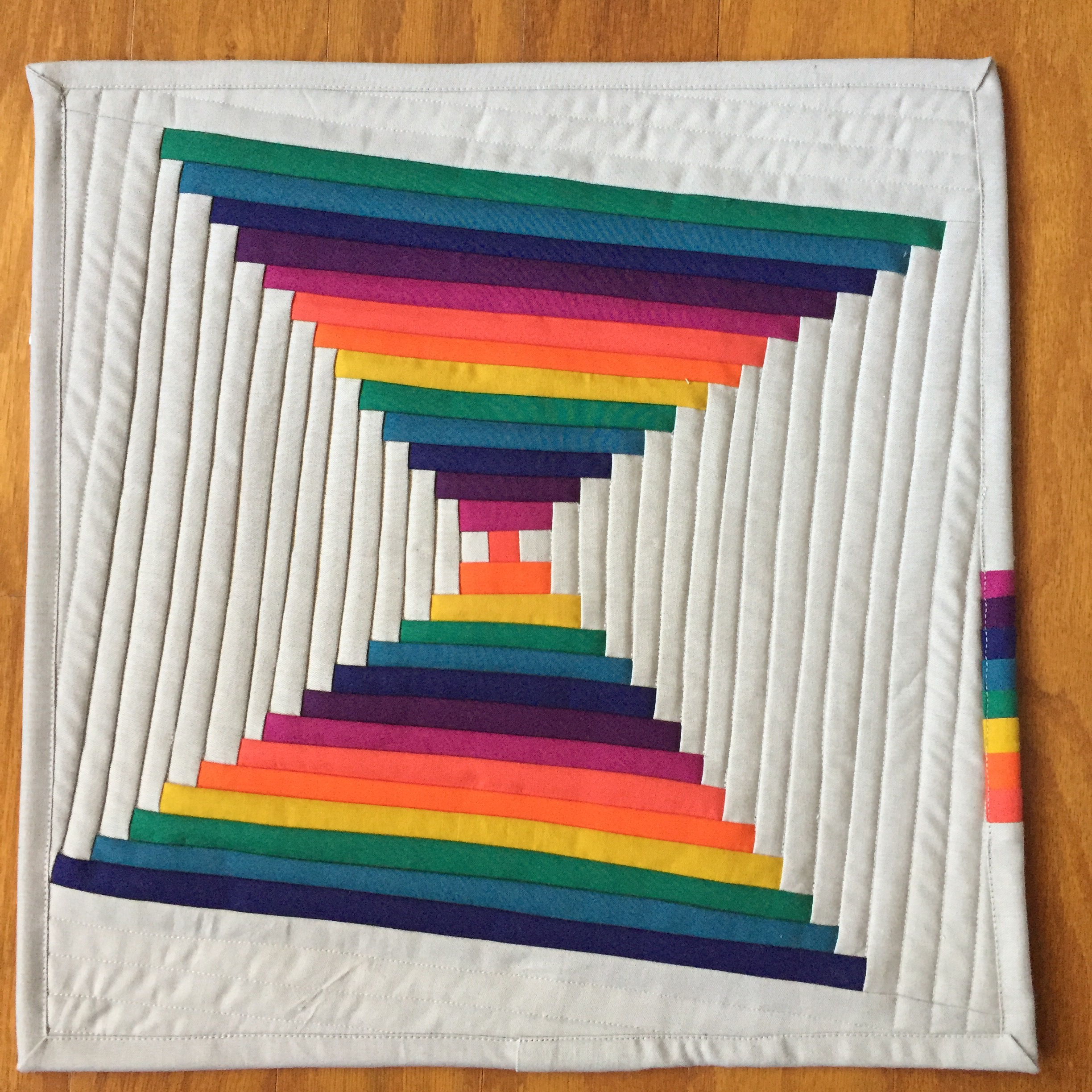 Saturday night was the pajama pizza party and rainbow mini quilt swap. Here is the quilt I made: