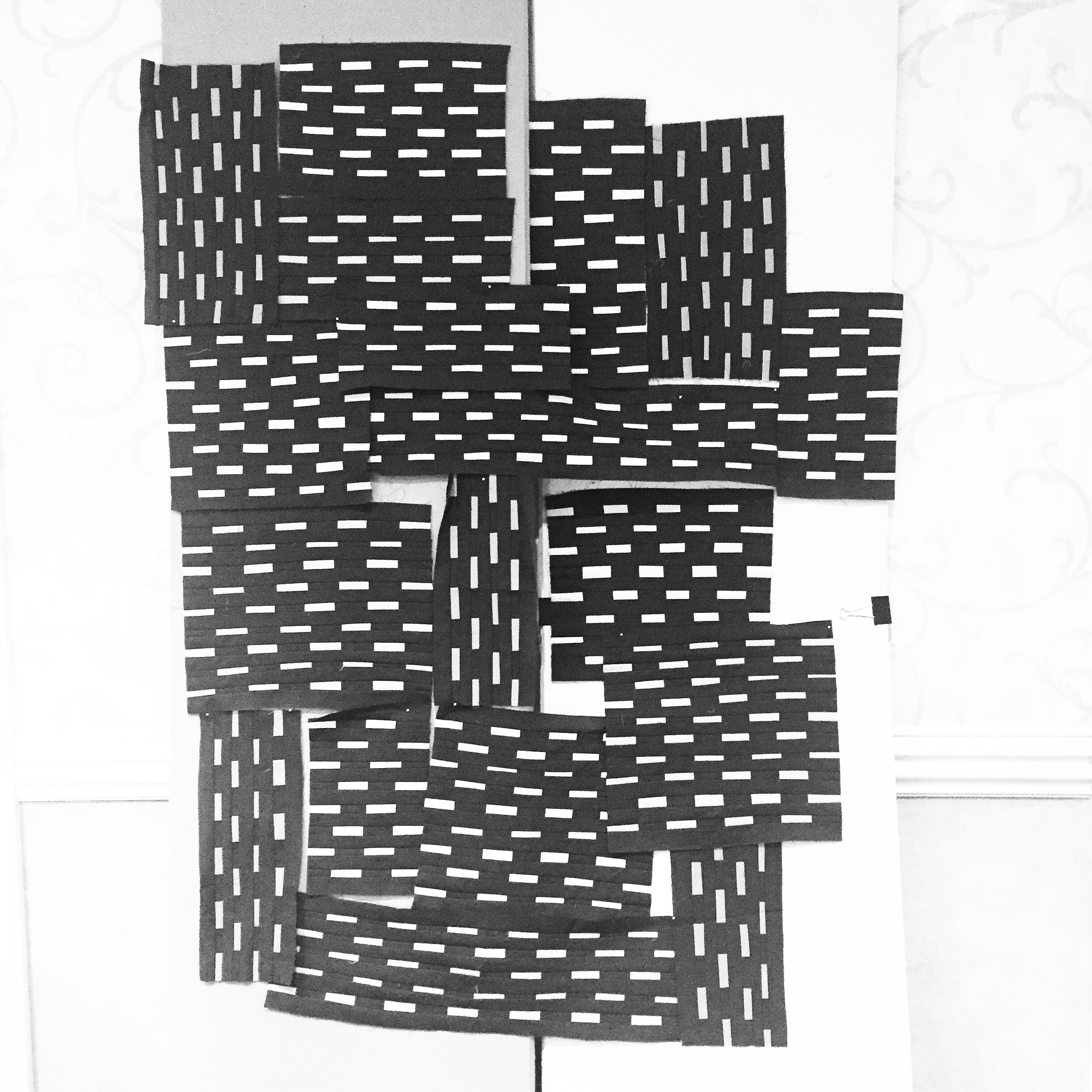 On Thursday, I got right to work on some more of my big stitch blocks. I was planning to make quite a few more before laying them all out in a top, but I realized on Thursday night that after making three, I just might have enough! (I over exposed the shot to hide some shabby hotel wallpaper.)
