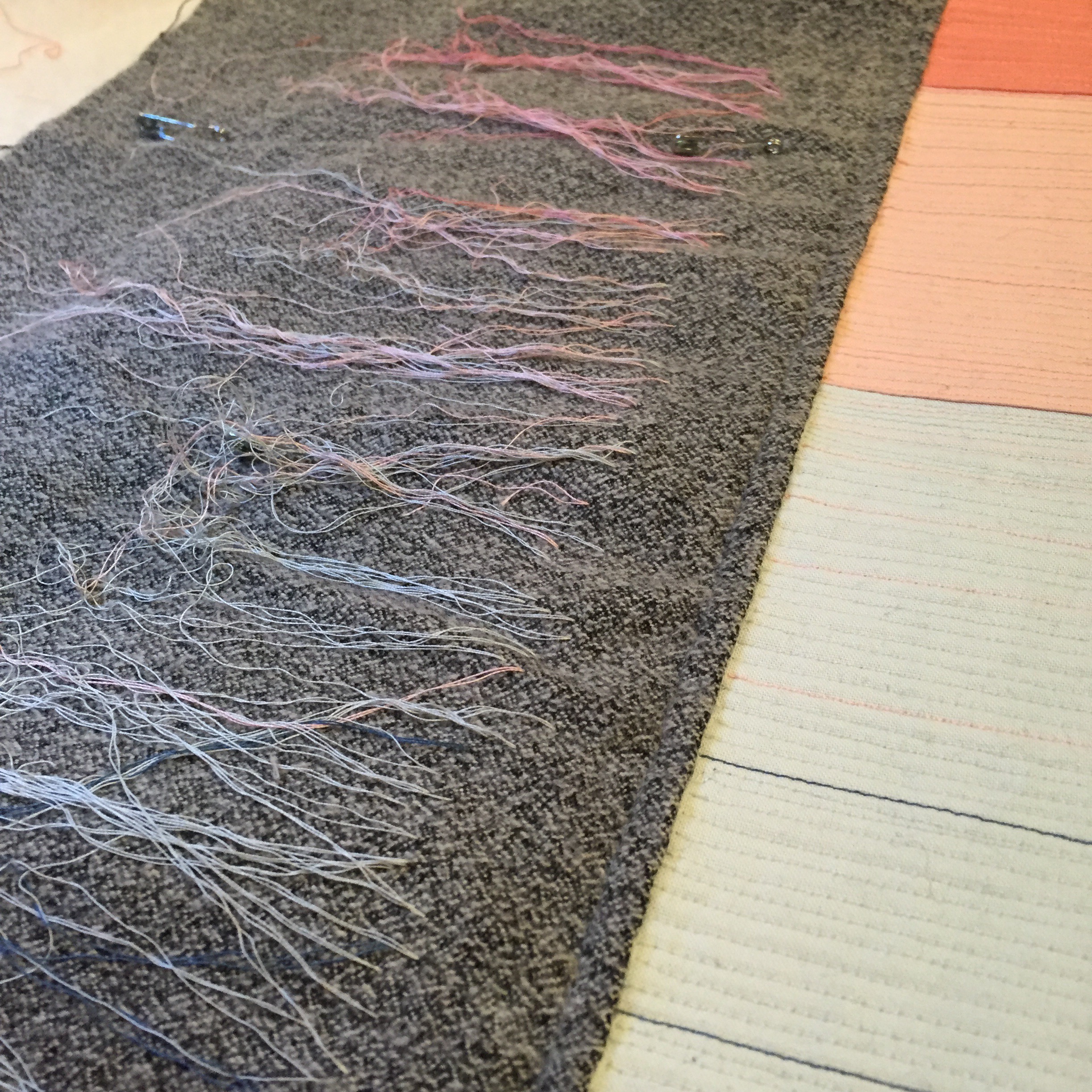 I finished my big stitch top on Saturday night, and started burying those threads on the quilt I’ve been working on for awhile. It was a perfect occasion to do that, since I could talk and bury at the same time. My friend Heather Kojan introduced me to self-threading needles, and I can not say enough about how this improved the process for me.