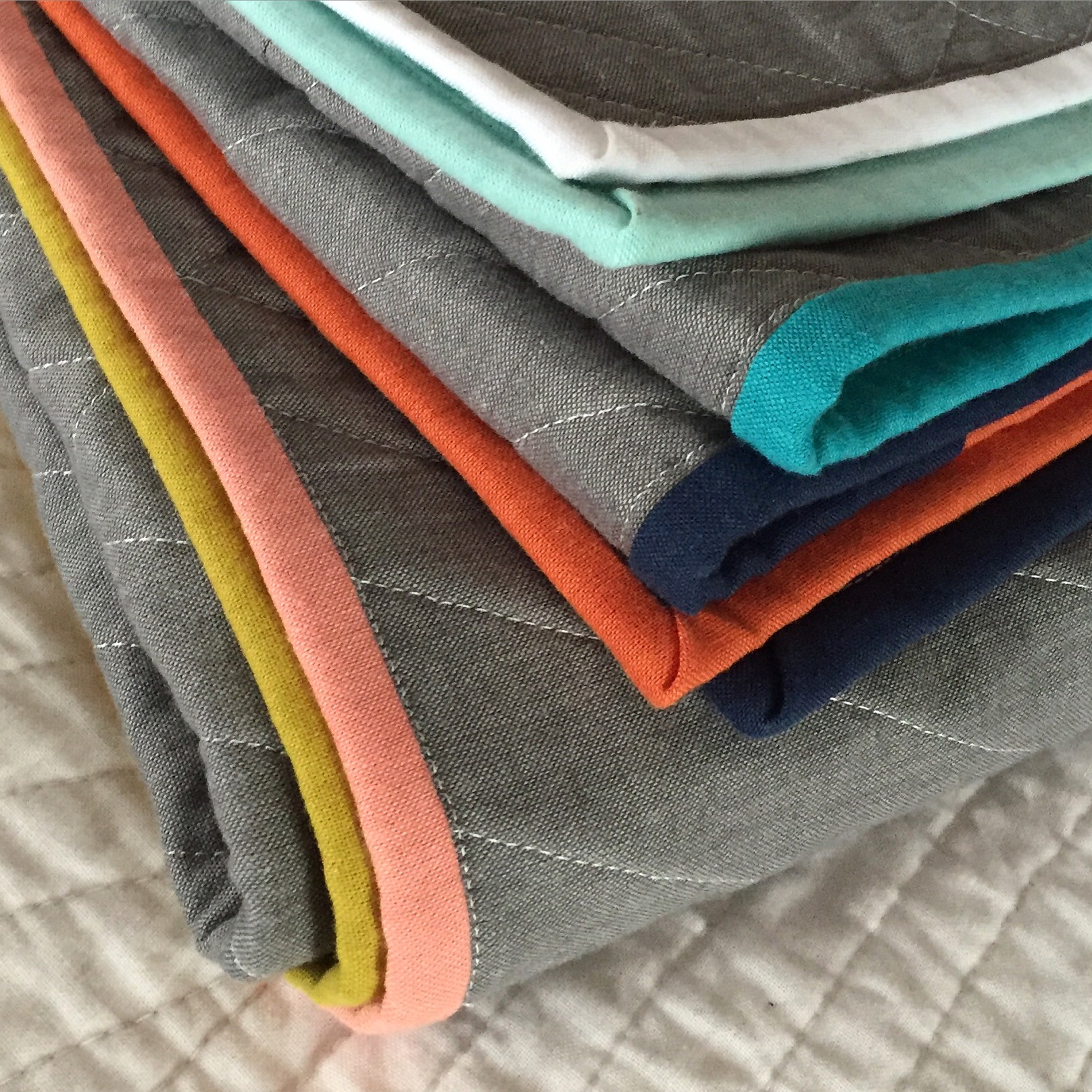 The new fabric is a collection of blenders called We Are All Stars. It is a really gorgeous basic print that comes in attractive and useful colors like Shoots, an olive-like green; Dew, a perfect peach; and Mist, a tone-on-tone grey white, among so many others.
