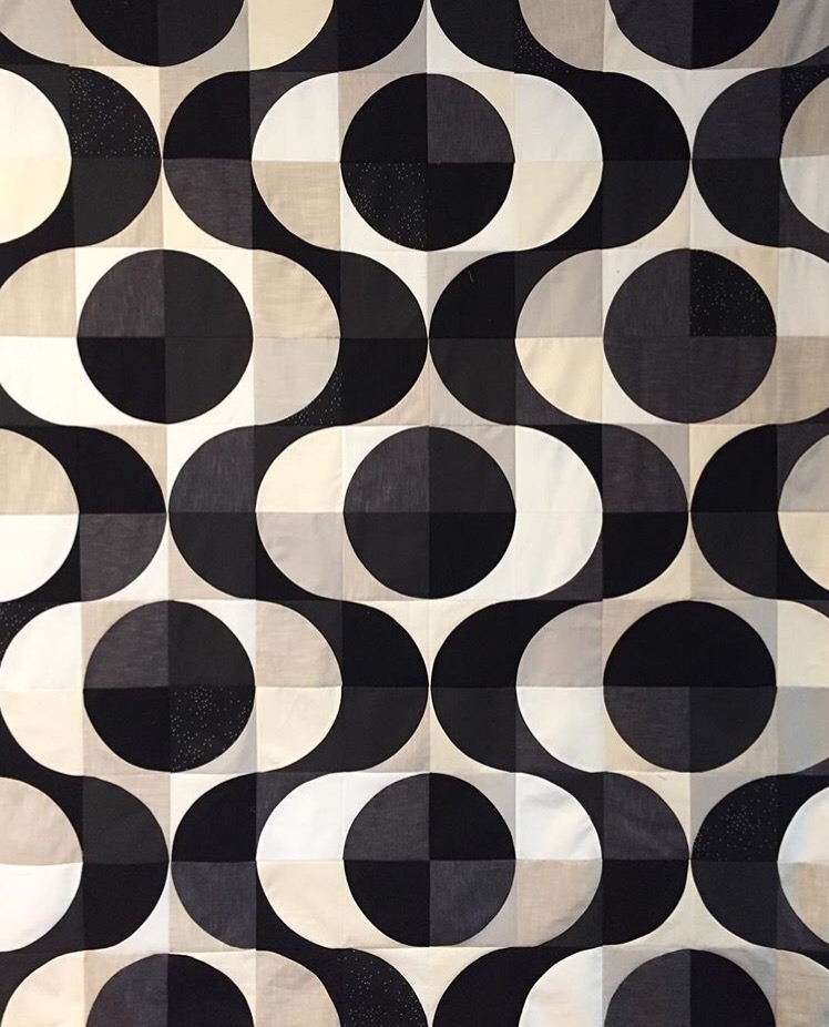 We made quarter circles and to form Trill quilt onion shapes. Since I had given the original Trill away, I made a new top in black and white and left the seams exposed for teaching purposes.