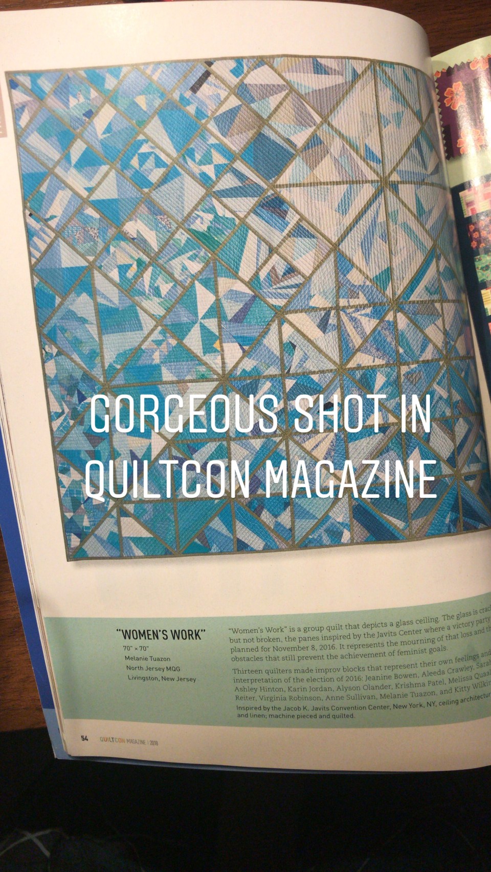 When the sun wasn’t directly shining on the quilt, it made the sashing shimmer beautifully. It’s also featured in the QuiltCon issue of Modern Patchwork, so check that out in a store near you.