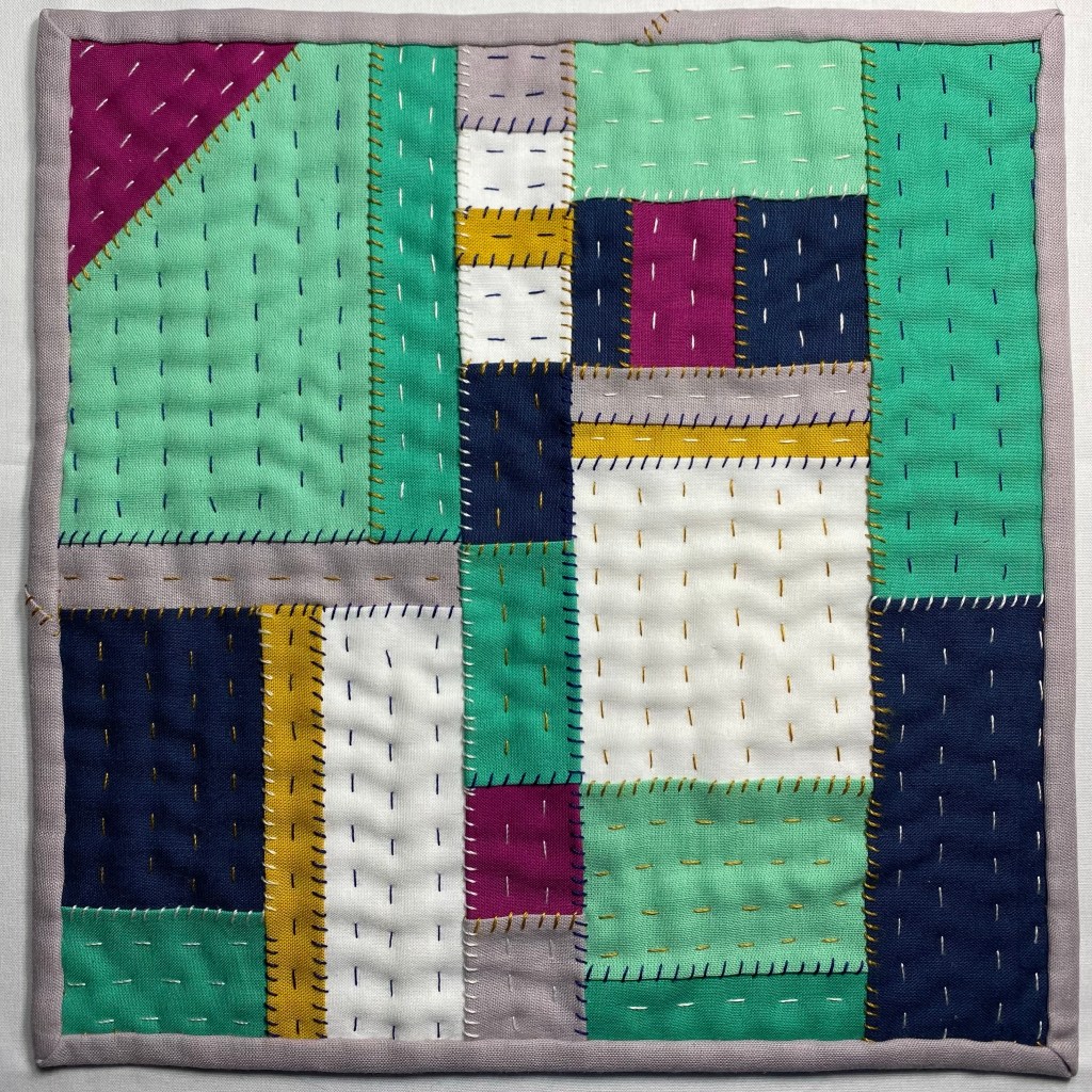 During the month of December, I channeled the challenging work of preparing for a pandemic holiday season into a mini quilt that I used as a study for some future projects.